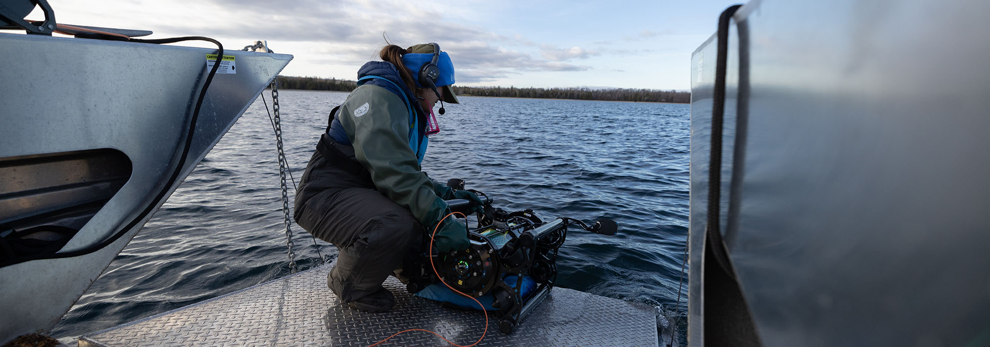 Lately they have shifted their lens underwater, partnering with Boxfish Robotics to bring their LUNA class ROV to Canada for the first time, allowing them to create cinematic imagery down to 500 meters (1,600 feet) deep. They have learned to “swim with the fishes”, using advanced underwater robotics and a custom-designed Henley landing craft to uncover never-before-seen freshwater worlds and wildlife behaviours for storytelling and science. They filmed the first known scientific documentation of Lake Whitefish spawning, and discovered the Africa, a 19th-century Lake Huron shipwreck. Their current project is Hidden Below: The Great Lakes, a wildlife documentary about underwater life in the Great Lakes for TVO. They have also partnered with PBS Detroit to bring the underwater exploration experience to audiences in real time with Hidden Below LIVE streaming events.